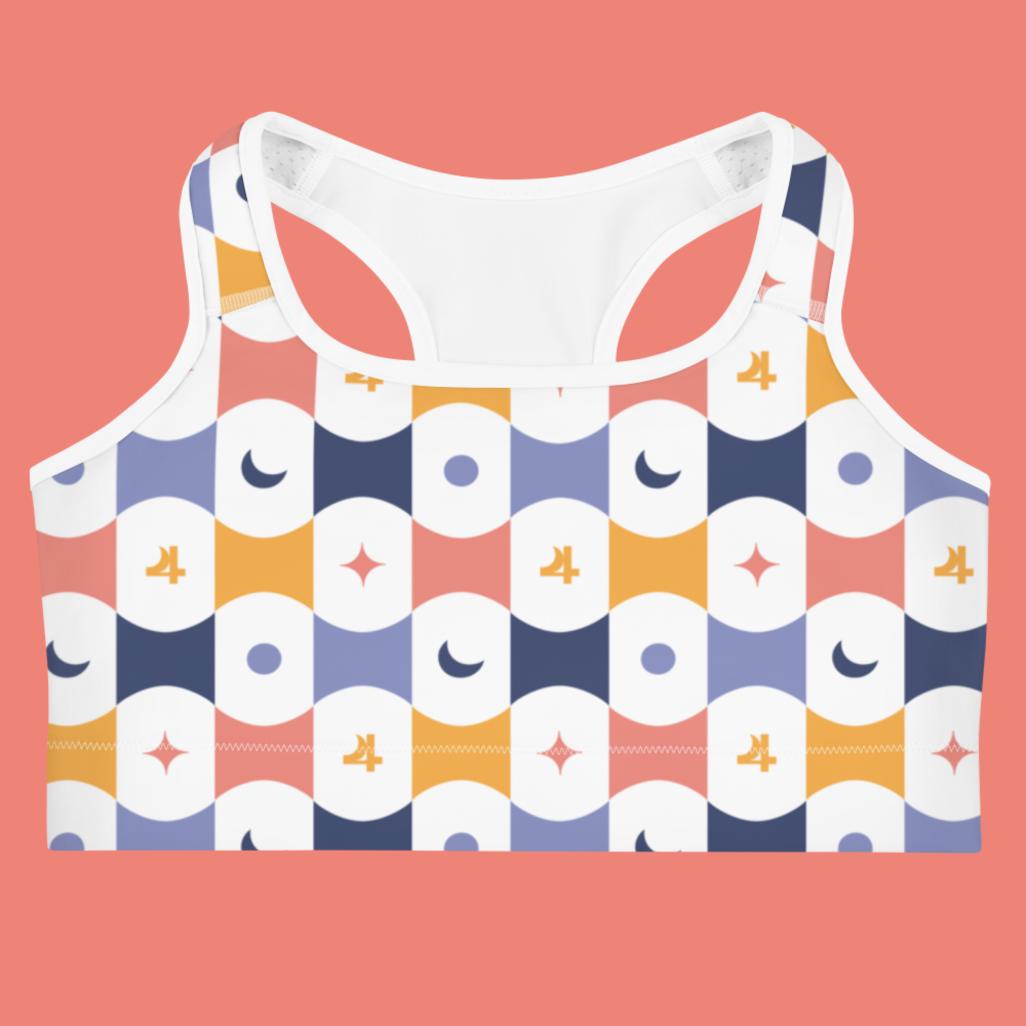 celestial check - sports braSHOP NOWShow your support of postpartum awareness with our bold and beautiful celestial check sports bra.