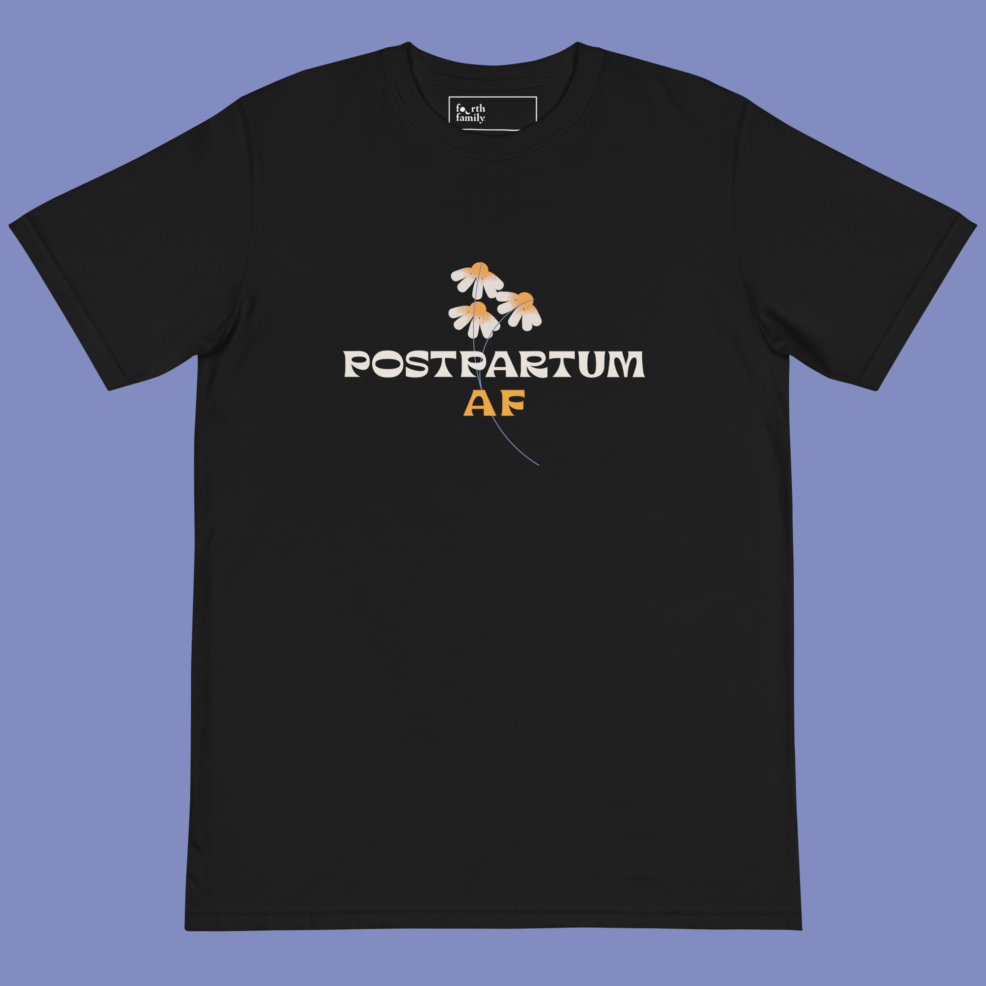 postpartum AF - classic teeSHOP NOWIt ain't always flowers and sunshine, but it's real. We're here to say it out loud - we are postpartum AF.